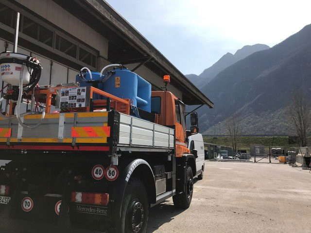 The MIP weeding water module for roadway shoulder and New Jersey weed control is equipped with parking feet.