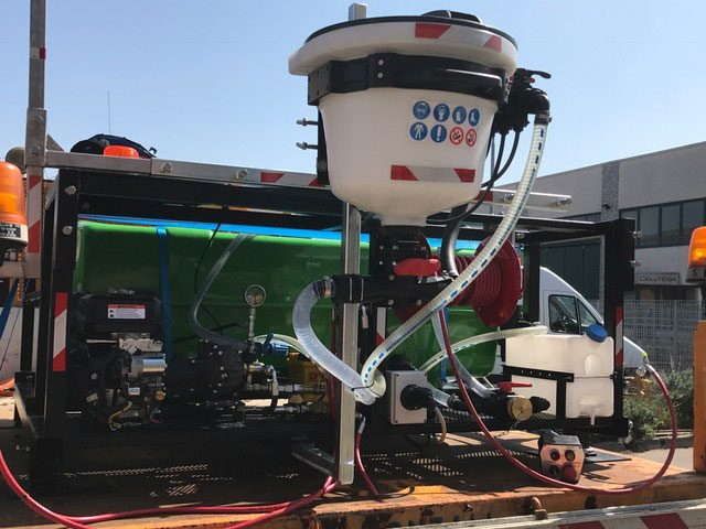 The “MIP DISERBO” weeding water module for roadway shoulder and New Jersey weed control is equipped with polyethylene breakwater tanks with a capacity from 500 liters to 5000 liters; the support framework of the tank and of the engine/pump system is completely made in tube-shaped steel.
